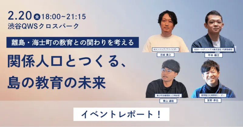 タイトル: 関係人口とつくる、島の教育の未来ー離島・海士町の教育との関わりを考える夜ー