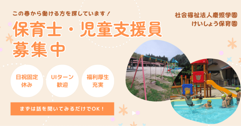 タイトル: 今、知ってほしい保育園のこと|けいしょう保育園で保育士を募集しています!