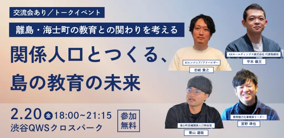 タイトル: 関係人口とつくる、島の教育の未来ー離島・海士町の教育との関わりを考える夜ー
